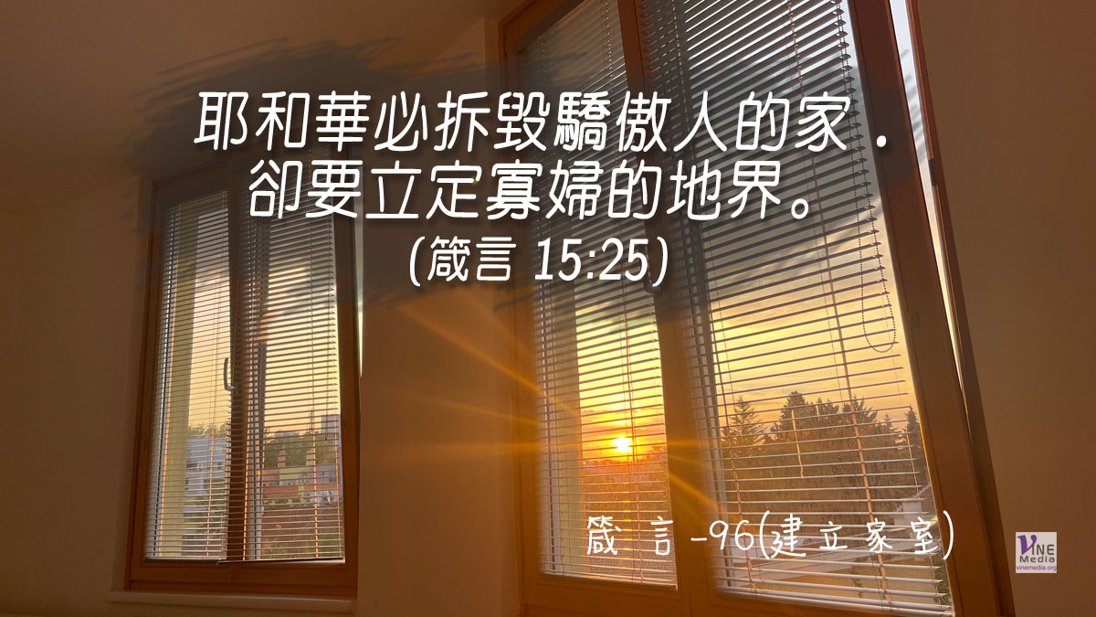 「耶和華必拆毀驕傲人的家」──神要拆毀驕傲、自大、自義人的家──就是不會為他們建立家室。整本聖經中,也只有大衛蒙神應許會為他「建立家室」──「我必使你安靖、不被一切仇敵擾亂.並且我耶和華應許你、必為你建立家室。」(撒下7:11)