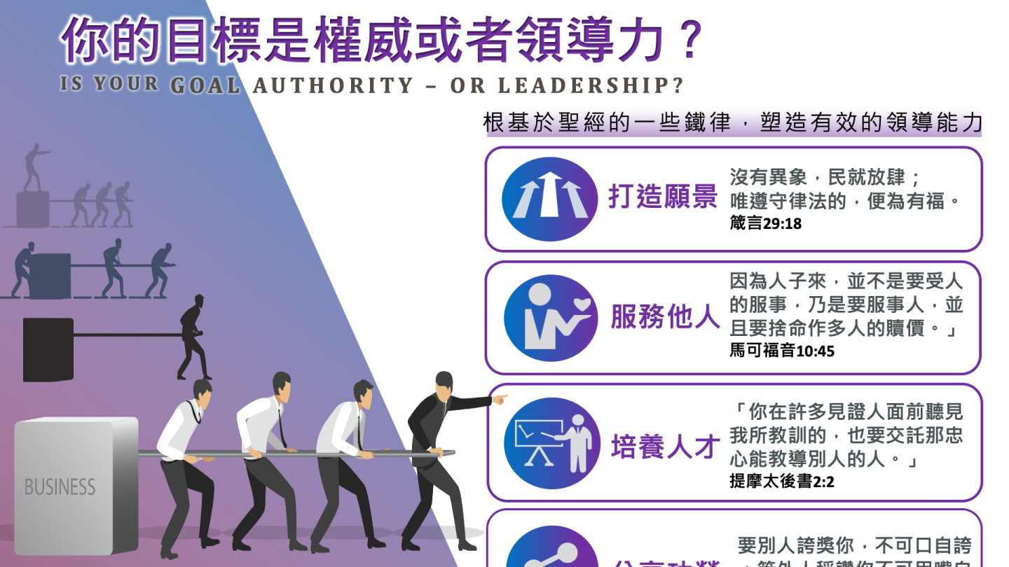 有人說,要確定你是不是領袖的唯一方法是轉身看看是否有人在跟隨你。真正值得跟隨的領袖有哪些特點?以下是根基於聖經的一些鐵律,對塑造有效的領導能力很有幫助: