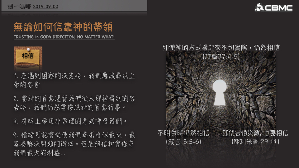 無論如何信靠神的帶領 TRUSTING IN GOD’S DIRECTION, NO MATTER WHAT