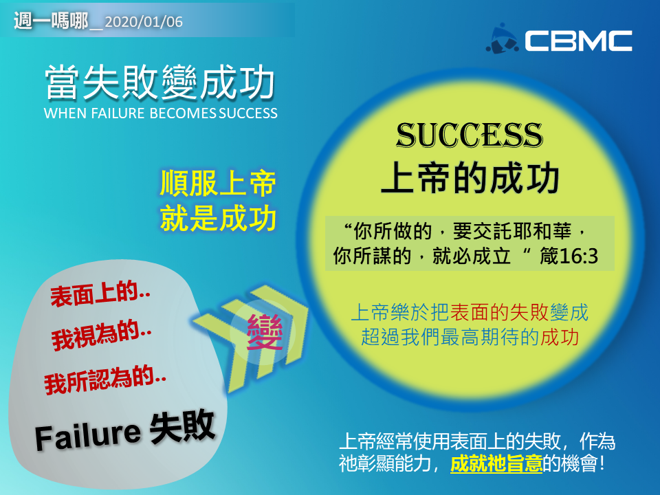 - 你認為上帝如何能使用你的失敗,不只是帶來成功,也讓你成為祂希望你成為的人?