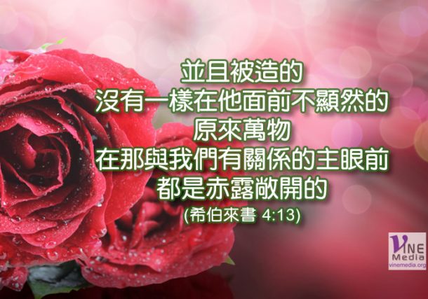 並且被造的、沒有一樣在他面前不顯然的.原 …